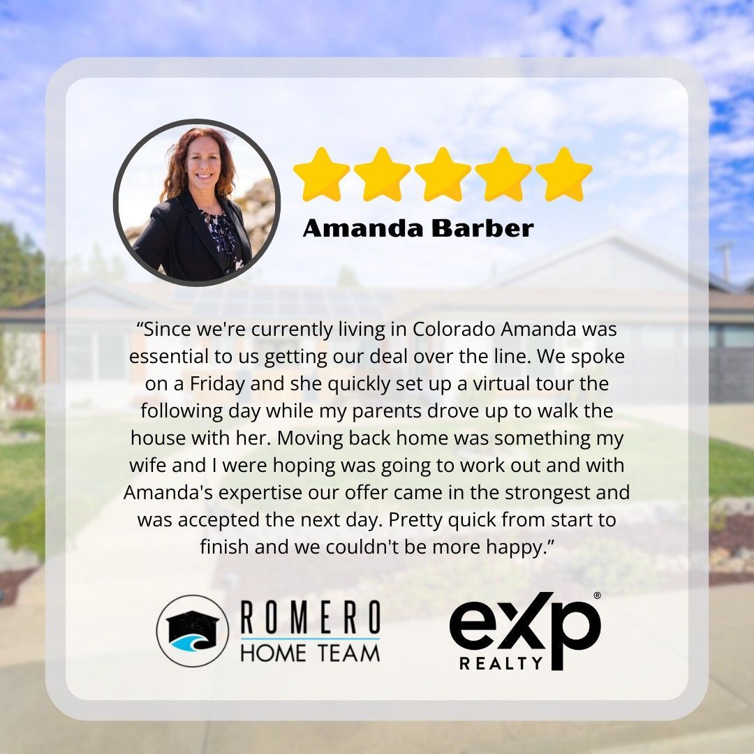 "She has great local knowledge, quickly began identifying homes that matched our preferences, and was able to negotiate some slightly unusual terms for us. She also introduced us to an agent who is helping us sell our current home. Our experience with Amanda was terrific from beginning to end, and I highly recommend her."